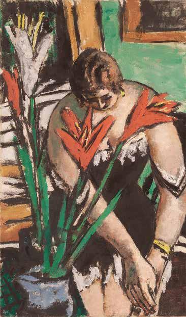 mit roten und weissen Lilien (Woman at Her Toilette with Red and White Lilies) , 1938. This dynamic, poignant painting is now on view as part of Cross Pollination —an exceptional work from a major German expressionist painter not represented in HoMA’s collection.