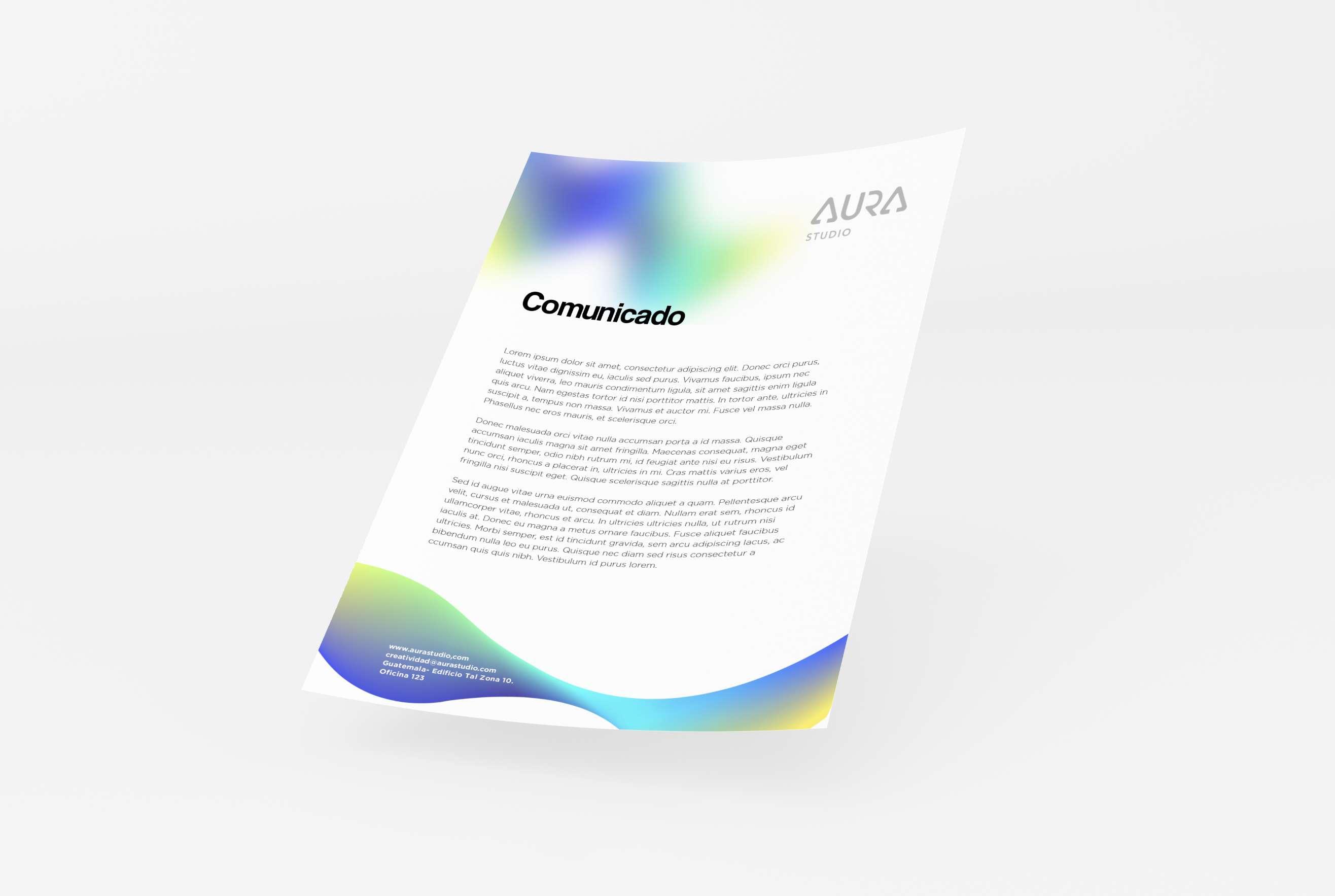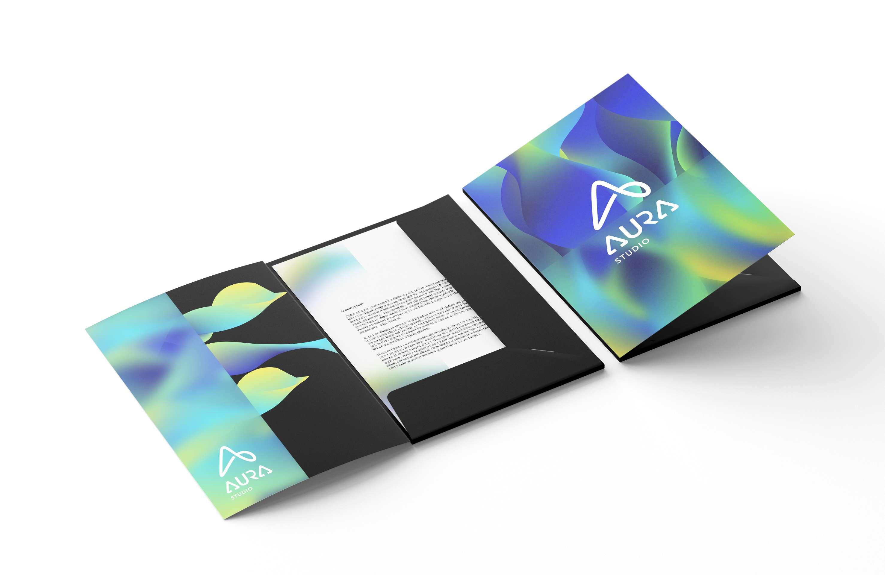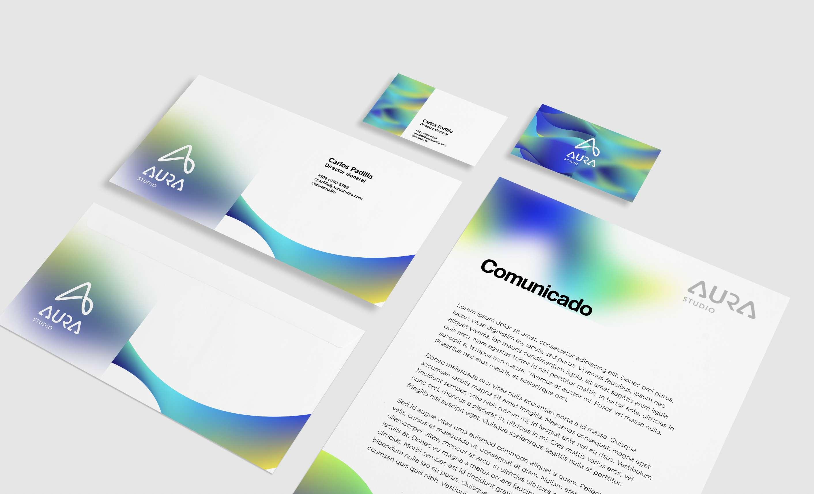 Al crear una identidad de marca para AURA Studio era necesario reflejar un sentido de equilibrio y simplicidad, ya que creen en el diseño conceptual de espacios inteligentes. El resultado fue la creación de una abstracción de la letra A, tratando de ser creativo, original y minimalista a partir de la palabra "AURA" y elementos visuales que reflejan la creatividad y el alma de los proyectos con el uso de color vibrante.