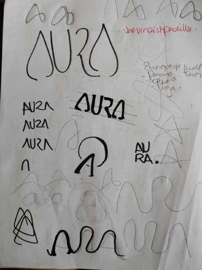 - El Título está hecho de las abstracciones mayúsculas de la palabra AURA. Siendo característico de la letra A serifas internas y la U,R, con estilo palo seco/san-serif