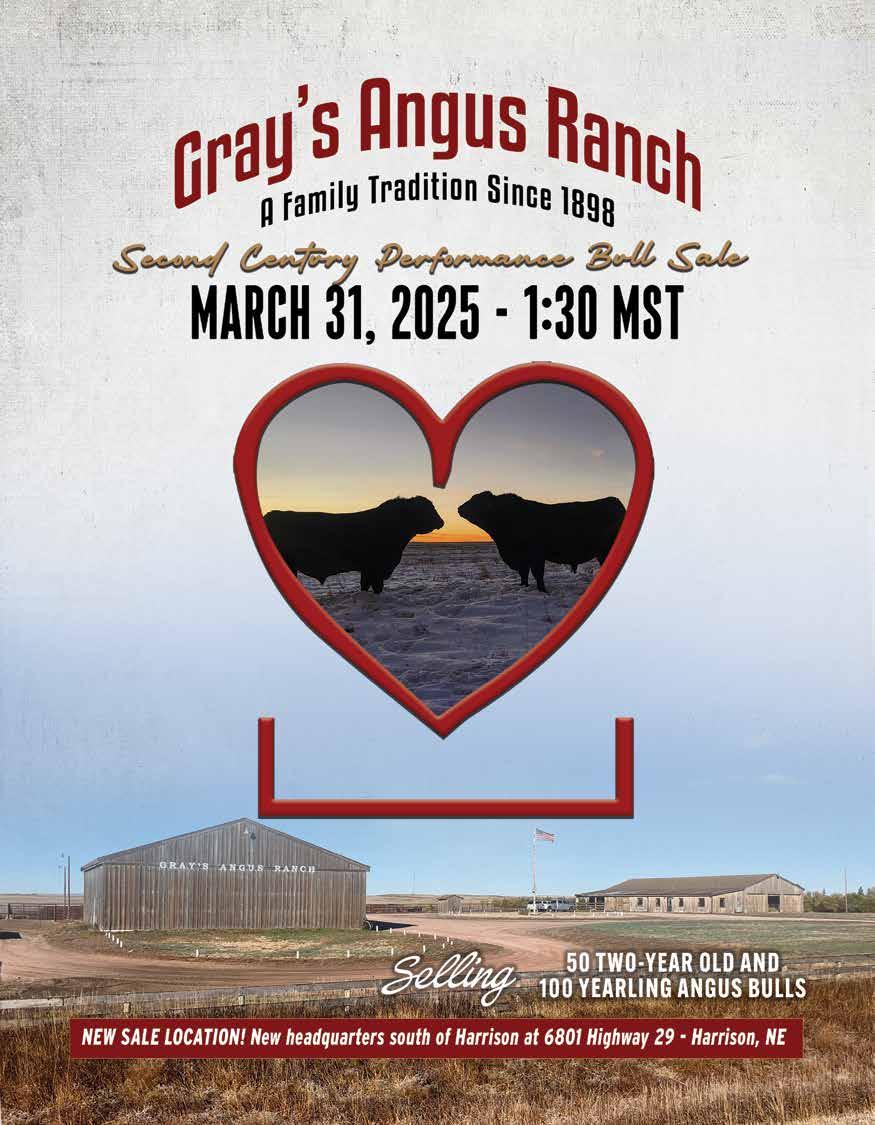 Welcome to Gray’s Angus 2nd Century Performance Bull Sale! We’re excited to have the privilege of moving our sale location to the old Windy Acres Sale Barn at Harrison, NE. We’re thankful to Broken Arrow Angus & the Krein Family for allowing us the opportunity. It’s a great facility for our Registered Angus Bull Development and Spring Sale. We are looking forward to pressing on with the 7th generation, and better serving you, our customers as well.