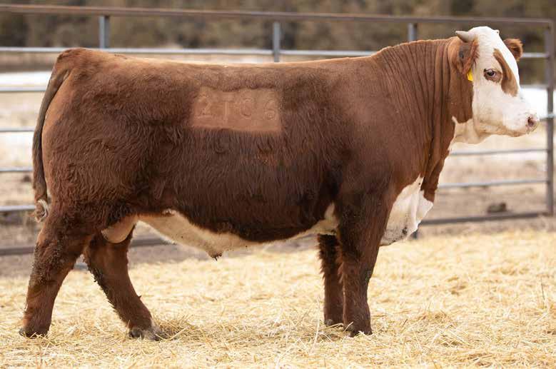 2023 Hoffman Ranch Spring Bull Sale 16 Friday, February 17, 2023 - 12:00 PM CT Hereford Bulls HORNED. Top 4% UDDER, Top 5% TEAT, Top 15% CEM REG: 44380933 DOB: 1/29/22 TATTOO: 220 25 BCC DOMINATOR 619D SR DOMINATE 308F ET CHURCHILL LADY 1162Y ET CL 1 DOMINO 215Z BCC MISS BELL 206Z GOLDEN OAK OUTCROSS 18U DCC 8006 PATTI 4266 ET GOLDEN-OAK FUSION 3S GOLDEN-OAK 60D MALLORY 15M BR DM CHANNING ET C MS PURE GOLD 2003 GOLDEN OAK OUTCROSS 18U H AC MARIANNE 231 ET H VICTORY 600 ET CED BW WW YW MILK M&G CEM SC MARB REA BMI$ CHB$ 0.6 3.5 51 85 17 42 5.7 1.0 -0.02 0.55 303 103 H BL DOMINATE 220 ET ACT BW 90 ADJ WW 625 POLLED. Top 5% MCW, Top 10% SC, Top 10% Stay, Top 15% $BII, Top 15% $BMI, Top 15% M&G, Top 15% WW, Top 20% TEAT REG: P-44357325 DOB: 1/29/22 TATTOO: 2085 26 BCC DOMINATOR 619D SR DOMINATE 308F ET CHURCHILL LADY 1162Y ET CL 1 DOMINO 215Z BCC MISS BELL 206Z GOLDEN OAK OUTCROSS 18U DCC 8006 PATTI 4266 ET NJW 73S M326 TRUST 100W ET BEHM R294 JASMAN102Y NJW 73S W18 HOMETOWN 10Y ET H LADY EXCELL 824 ET BEHM 100W CUDA 504C H MS EXCEL 7945 ET H MS 824 EXCEL 4146 ET CED BW WW YW MILK M&G CEM SC MARB REA BMI$ CHB$ 3.5 3.0 63 96 30 62 4.3 1.5 0.15 0.45 399 103 H WMS DOMINATE 2085 ACT BW 95 ADJ WW 728 LOT 26 SIRE OF LOTS 25-33, LOTS 129-134, LOTS 182-187 Dominate has really bred true to his own phenotype. His sons are long spined and heavy muscled cattle who have a big foot underneath them. He has created quite a following from some of the strictest commercial cattlemen in our region. SR DOMINATE 308F ET REG: 43954712 DOB: 03/15/18 CL 1 DOMINO 215Z BCC DOMINATOR 619D BCC MISS BELL 206Z GOLDEN OAK OUTCROSS 18U CHURCHILL LADY 1162Y ET DCC 8006 PATTI 4266 ET CED BW WW YW MILK M&G CEM SC MARB REA BMI$ CHB$ -2.4 5.1 68 111 29 63 7.0 1.0 -0.04 0.80 286 130 Sire Dam reference sire H MS EXCEL 7945 ET Dam of lot 26, Maternal Grand Dam of lot 152 H MS 824 EXCEL 4146 ET Maternal Grand Dam of lots 26 Maternal Great Grand Dam of lot 152