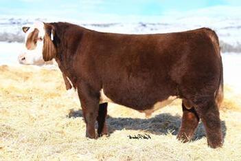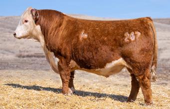 calving ease to yearling weight and has extra size, length, and foot quality. Top 2% HPreg, Top 5% YW, Top 10% $M, Top 10% CEM, Top 10% MH, Top 10% WW,
