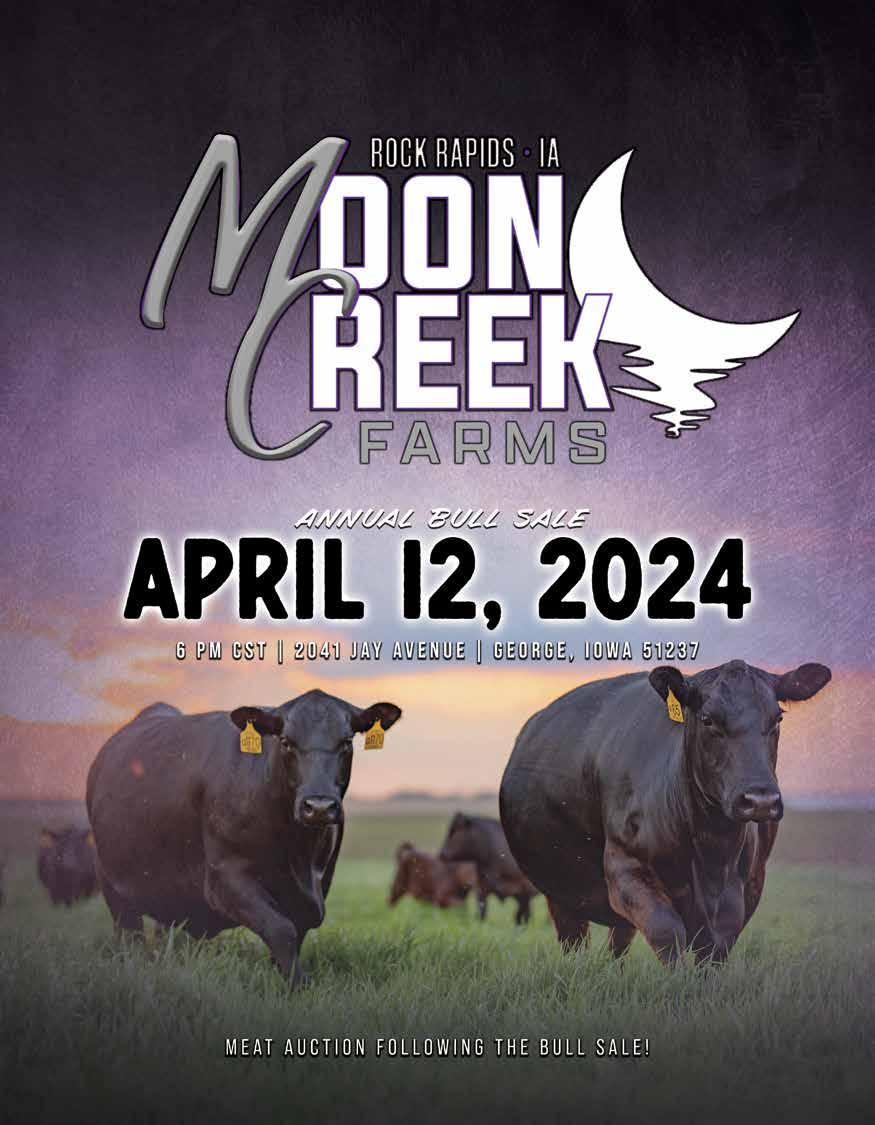 Moon Creek will be retaining 1/3 semen interest in all the bulls selling unless stated otherwise. Buyer will receive full possession and full salvage value.