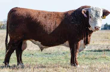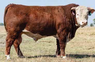 Well put together 942 son from another stout made Laredo mother cow. Fully pigmented, with a moderate frame and thick made top. Big ribbed with smooth shoulders.