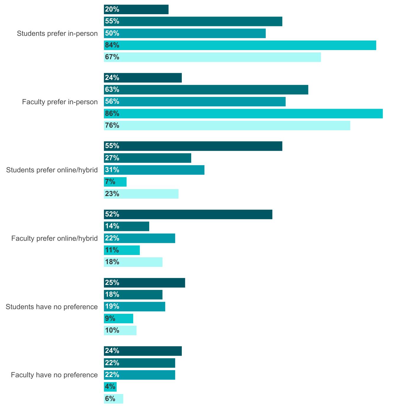 In your opinion, do faculty members at your institution prefer teaching in-person or online/hybrid courses when both are options? Faculty tend to...
