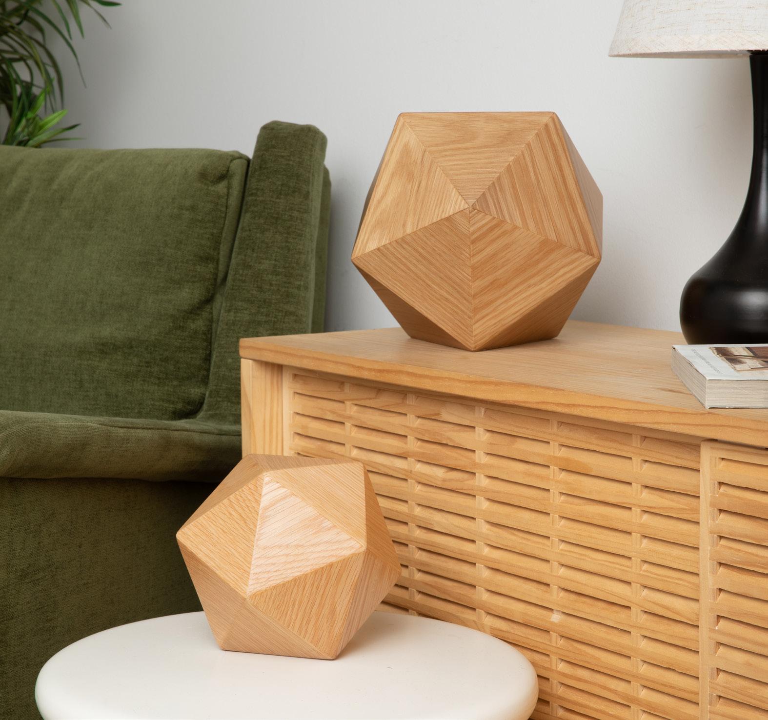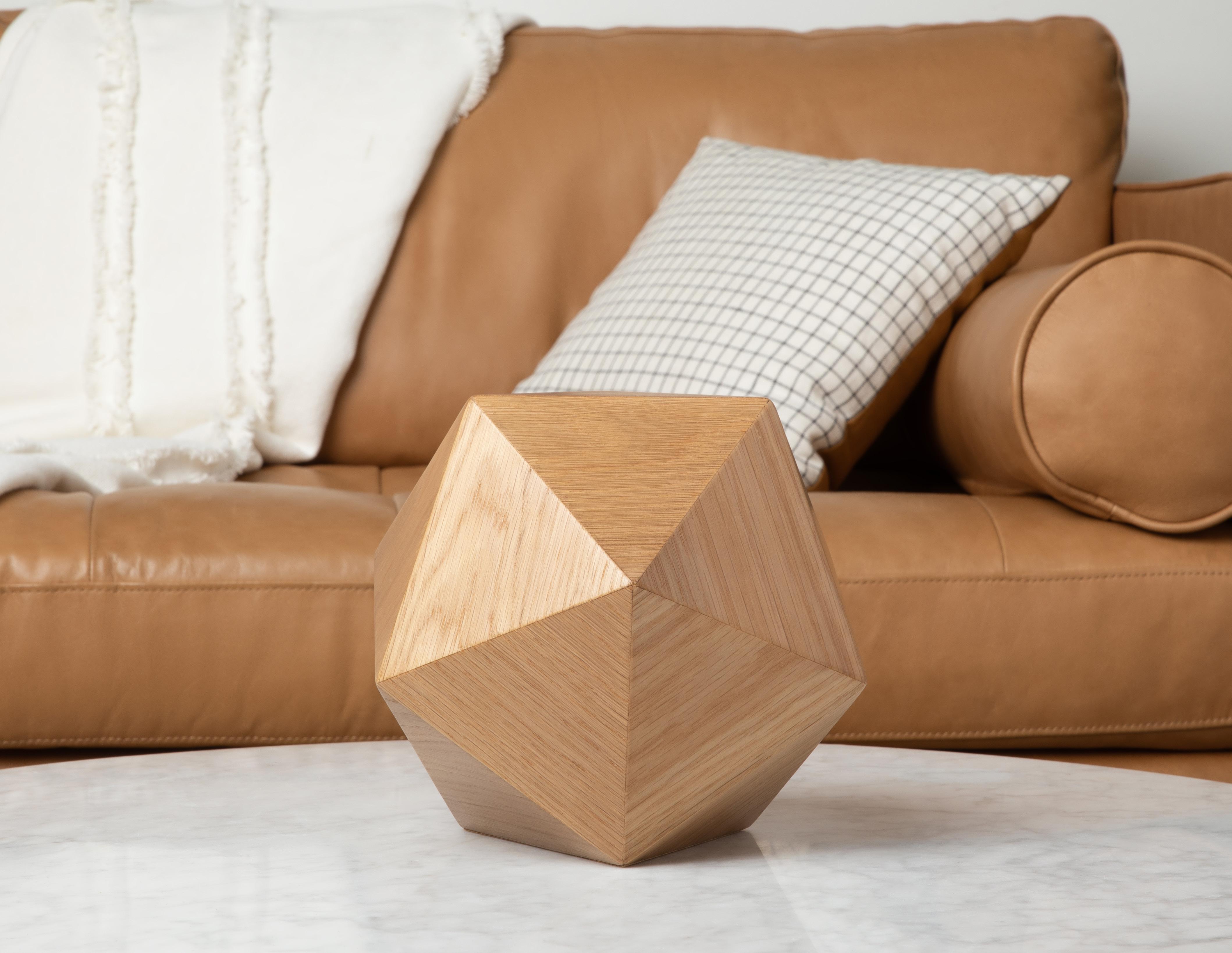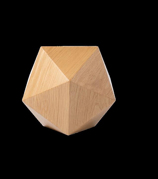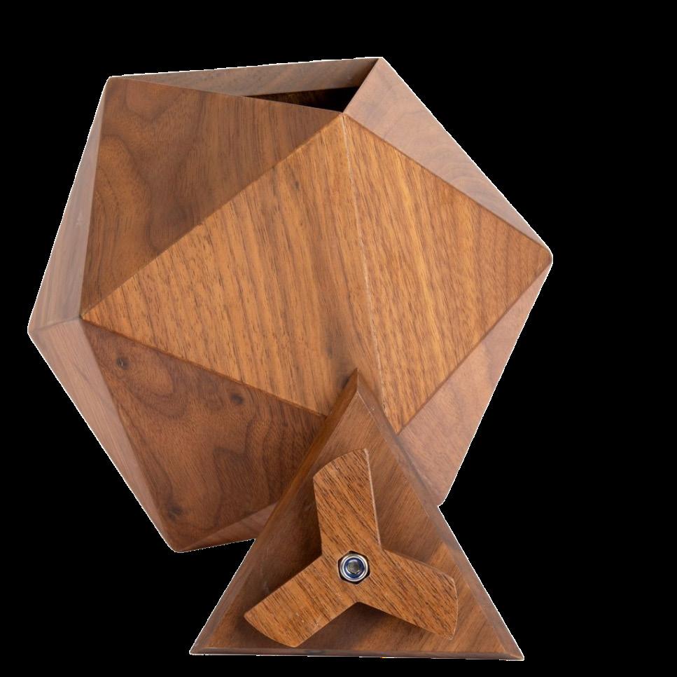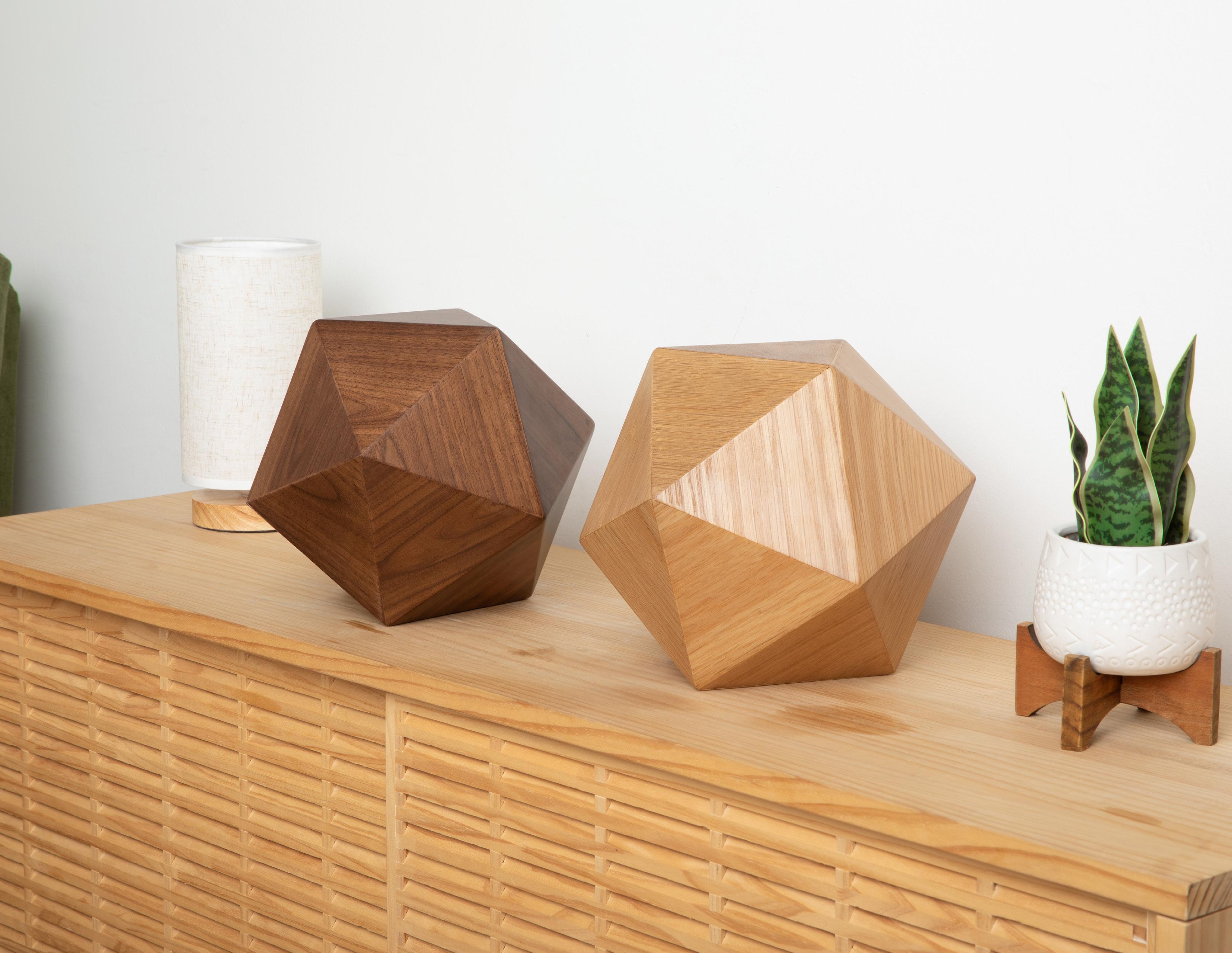 This polyhedron urn is called an Icosahedron, for its 20 faces, or sides. It is inspired by 1920’s Art Deco design and is made from the finest hardwoods selected for strength, beauty and stability to honor the memory of your loved one.