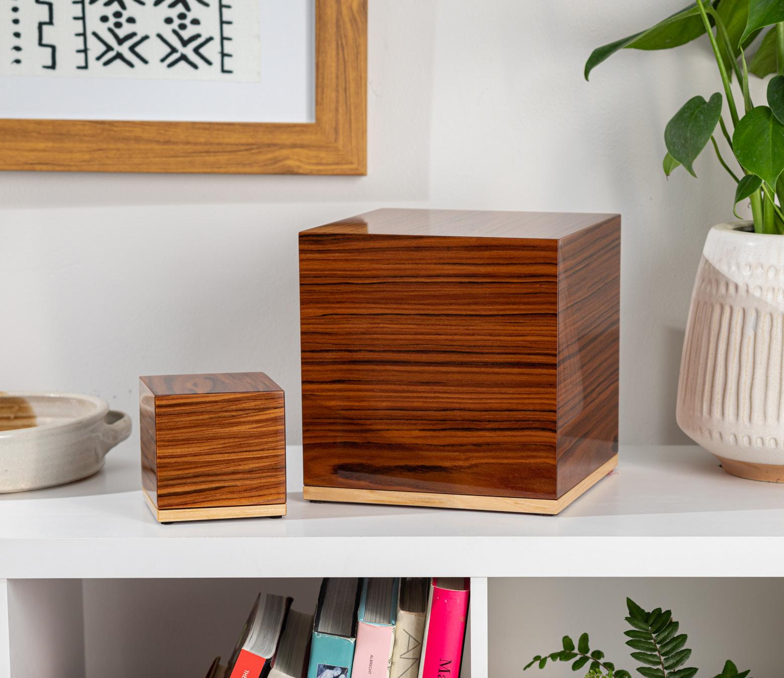 Each memorial we make is intended to celebrate the remarkable and unique lives of your loved ones, while also seamlessly fitting into your home and reflecting your personal style. Our Barnes urn in Walnut achieves just that. Pictured here is the Barnes in our large size.