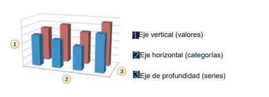 Un eje vertical (denominado también eje de valores o eje y) y un eje horizontal (conocido también como eje de categorías o eje x). Los gráficos 3D tienen un tercer eje, el eje de Los gráficos tienen normalmente dos ejes que se utilizan para medir y clasificar los datos: profundidad (denominado también eje de series o eje z), que permite representar los datos a lo largo de la profundidad de un gráfico.