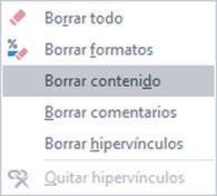 Para eliminar filas o columnas, deberemos posicionarnos sobre una celda, y elegire mos Filas o Columnas de la tabla en el botón Eliminar, disponible en la pestaña de Inicio y en el menú contextual de la tabla.