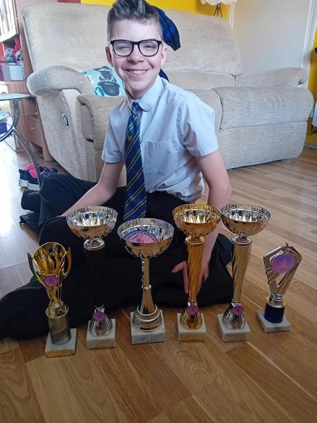 Congratulations to Thomas Smy (C8). Thomas attending the UKTMA Majorette Nationals Championships at the Weekend. He qualified for 5 routines via a number of Regional Competitions held between September 23 and March 24. Thomas went out on the floor and competed for his routines. He was feeling very nervous. However, when it was time for the presentation Thomas was delighted to get a place in the top 3. He placed 1st in all of his routines bringing home 5 trophies plus a Runner Up Trophy for a special routine he took part in. Well Done Thomas.