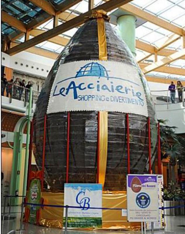 The tallest chocolate Easter egg ever entered the Guinness Book of Records in 2011. It was made in Italy and was a whopping 10.39 metres in height and 7,200 kg in weight. When it was measured at Le Acciaierie Shopping Centre, in Cortenuova, Italy, it was taller than a giraffe and heavier than an elephant!