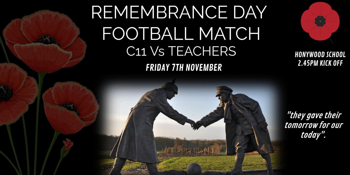 Today we held our fifth annual Teachers vs C11 Learners Football match. The match is more than just an opportunity to provide a bit of C11 and teacher rivalry, it is an opportunity to galvanise our community as we reflect on the freedoms we are all afforded. As the opposing teams gather in the centre circle for the 2-minute silence, the rest of the school join in around the edge of the pitch. As always it makes for an intense and competitive game. As I write this we have not kicked off, however I am confident that the game will not be without its drama and, dare I say, some controversy - there is usually a questionable penalty or two given.