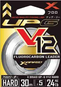 The Up-G Leader V12 Hard, is X-Braid’s flagship premium fluorocarbon leader. Crafted from authentic Japanese-sourced fluorocarbon, this leader spans a wide range of diameters, catering to everything from finesse fishing to robust saltwater angling. Its minimal diameter variation ensures consistent strength and performance. Thanks to the innovative α+1 special manufacturing method, X-Braid has enhanced this leader’s strength by approximately 1.3 times compared to previous models while achieving a 5% reduction in thickness. This slimmer profile not only maintains its durability but also significantly reduces its visibility to fish, making the Up-G Leader V12 Hard the only choice for anglers who will accept nothing but the best.