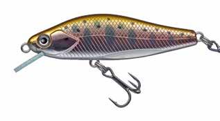 Ever Green developed the Nelmezzo 50FS minnow through thorough testing of trout reactions. During the split second of the pause, this sinking lure sways and emits a vibration to entice strikes. It uses a 1.2mm highstrength bib allowing for accurate casting to tricky spots and underwater obstacles. Although it is small, it comes standard with a high-strength Decoy treble hooks.