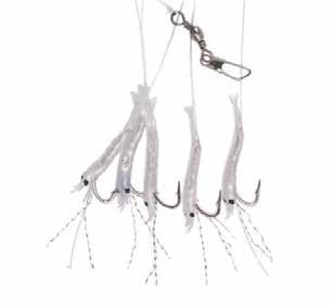 Make quick work of catching fish with Lazer Sharp Bait Shrimp Rigs. Each hook features a shrimp imitation that demands attention from many fish species. Lazer Sharp Bait Shrimp Rigs attach to mainlines with a swivel to reduce line twist and add convenience. The barrel swivel with safety snap allows anglers to add or change weights quickly. Available in three hook size 02, 04 and 08.