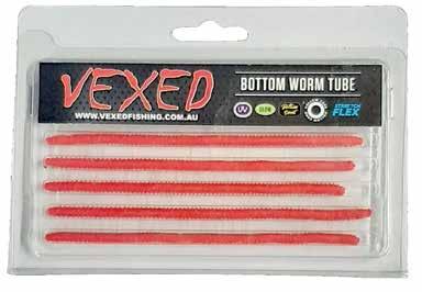 The Vexed Worm tube is a durable hollow soft bait tube that has been impregnated with our special Bottom Scent recipe that entices fish to bite and not let go. It’s made from super stretchy and durable Stretch Flex material that can be cut to desirable lengths and threaded onto a rig above the hook. Bottom Worm Tube can also be used as a soft bait lure on selected jig head models. It can also be used as replacement worm tube for the Vexed Bottom Worm hybrid jigs. Available in 10 colours and 130mm lengths. vexedfishing.com