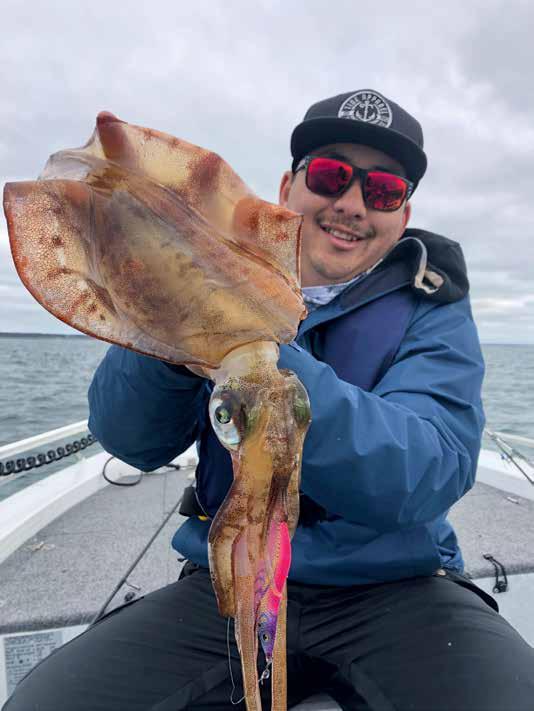 Kozi Sekino with a big southern calamari taken using a Yamashita Egi OH F fitted with a yamashita TR sinker.
