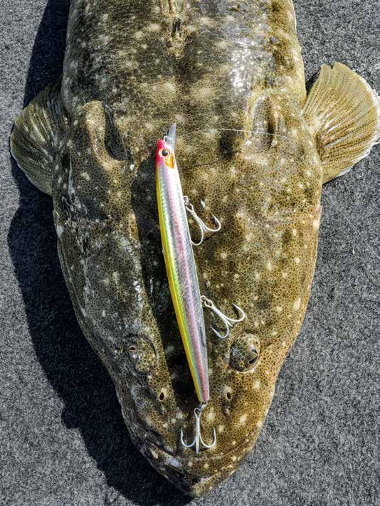 The outfit I like to use for jerkbaiting big flathead is generally a spin reel in size 25003000 with 16lb braid matched to a 7ft 2in spin rod rated 6-12lb. This rod length and rating allows for long casts when fishing expansive flats so the lure covers more ground. I like to fish minimum 20lb leader –this isn’t so heavy that it impedes the action of a jerkbait, and the 20lb leader provides good abrasion resistance.