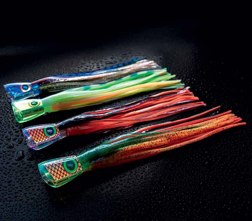 Meridian Tackle crafts some of the world’s finest resin-headed skirted lures, developed through years of rigorous on-water research. Based in Tasmania, the team has perfected lures tailored to target school southern bluefin tuna, combining precise shape, action, size, and colour for maximum effectiveness. Their renowned models—the Demon, Quasi, and Ahi—are all available in 5-inch sizes, ideal for various conditions. The Demon 5, proven to perform on barrel and school tuna alike, runs at 6–14 knots and suits any spread position. The Quasi 5, with its slanted 10-degree face, creates an impressive bubble trail and excels in the shotgun position at 5–9 knots. Lastly, the Ahi 5, celebrated for its head shape, is not only a stellar billfish lure but also a standout for school tuna, thriving in the corner positions or behind directional teasers in clean water. Add a Meridian 5inch into your spread today and see the difference quality skirted lures bring. meridiantackle.com.au