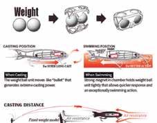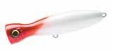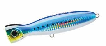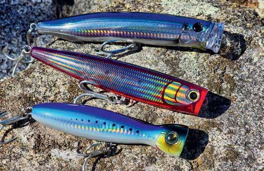 Another great hybrid option is the Shimano Ocea Bomb Dip. Designed with a small body and loud bubble-popping action, it offers a strong appeal while maintaining a silhouette that is easy for fish to eat. Its gourd-shaped body allows for short, controlled pops and reduces lure roll, making it incredibly userfriendly. Equipped with Shimano’s Flash Boost technology, it continues to flash even when paused, further enticing wary fish.