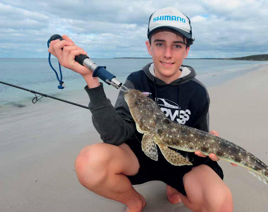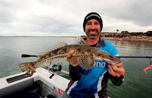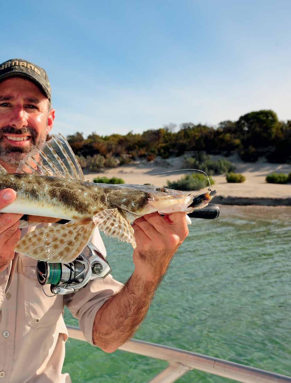 channel edges and drop-offs, or areas of light weed such as eel grass scattered over the sand. Basically, any area that offers cover and camouflage for flathead is worth investigating, especially when the surrounding seafloor offers very little. If you are working along a section of sand, it’s always worth investing time around the ends of the beach as the sand leads into hard bottom – fish will often sit around these edges.