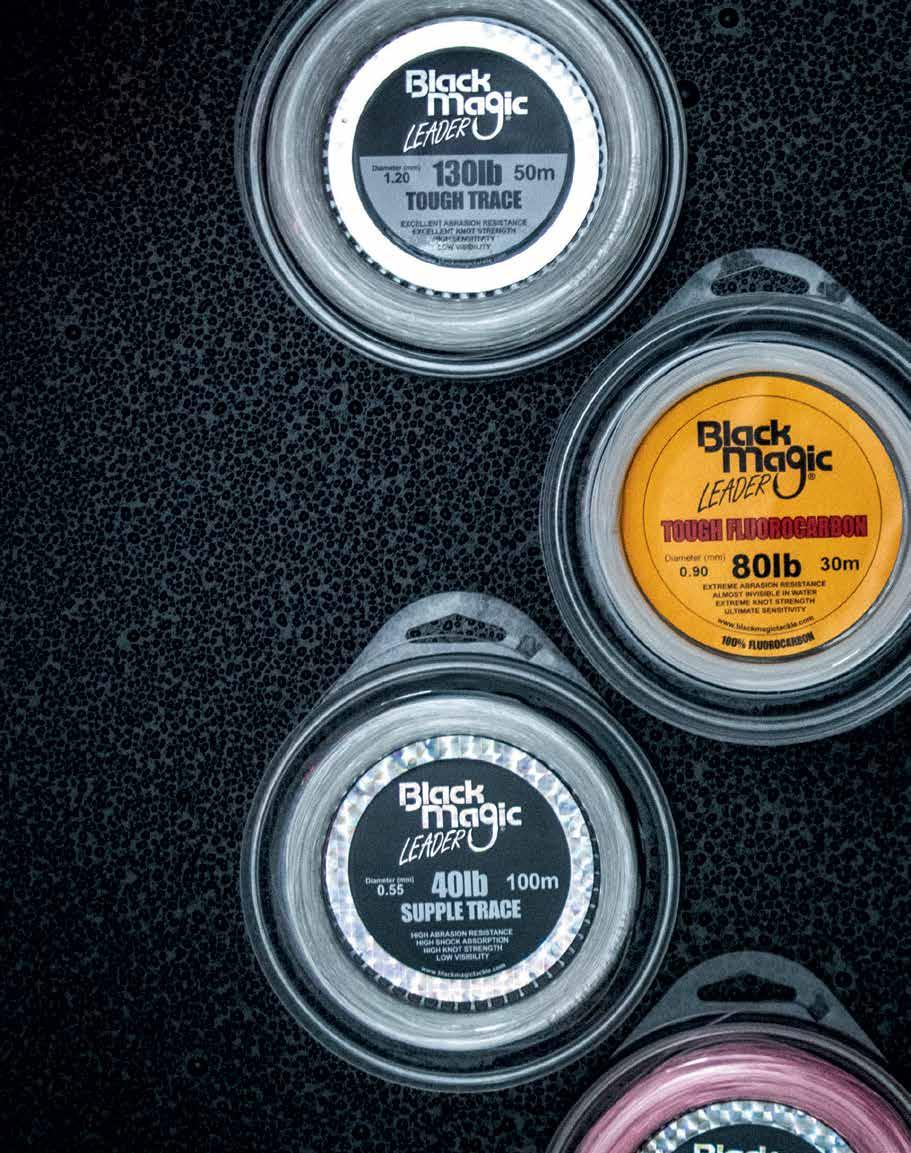 abrasion resistance, and water-repelling properties. It remains supple and easy to handle, with excellent knot strength. The leader absorbs shock from strikes and hook sets, preserving lure movement offering tenacious performance to land big fish.