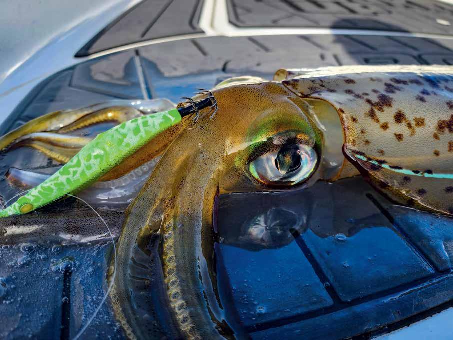 It’s on that slow side, when squid are finicky and holding deep or tight to cover, that these jigs really come into their own. They’re slowsinking – about 5.5 seconds per metre – so you need a bit of patience, but on that session they were the only jig getting consistent hits.