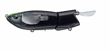 The Evergreen Otter Crawler is a topwater lure designed for targeting big fish. It features a 11.5cm body and weighs approximately 2oz, making it suitable for long-distance casting and precise accuracy. The lure is equipped with a dual-jointed body and a V-shaped metal blade that creates a distinctive “chattering” sound, attracting fish from a distance. Its unique wing design and concave body shape produce multi-directional water displacement, enhancing its presence in the water. The Otter Crawler performs well across a wide range of retrieve speeds, from slow to fast, making it versatile for different fishing conditions.