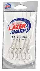 The Eagle Claw Lazer Bait Jig is a must-have for catching live bait for your next offshore adventure. Featuring five small pearl white soft plastic shrimp on droppers, this unique design replaces the more common synthetic “wing” and enhances fish-catching capabilities. The supple tail sections of the shrimp, along with their crystal flash feelers, create a lifelike movement that attracts baitfish. The jig is tied with 30lb monofilament line, equipped with a swivel and snap swivel at either end for easy attachment. Available in hook sizes #8, #4, and #2, it offers flexibility for chasing both smaller and larger live baits, giving you the confidence to quickly lift a full string of livies into your boat for immediate action..