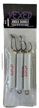 The Vexed Jingle Dangle serves as a floatation core, designed to elevate baits off the bottom and enhance visibility while reducing stingray and crab interception. Rigged with a glass rattle, it adds extra fish attraction. The Jingle Dangle concept, originally popularized by carp anglers in the UK and later modified by surf anglers in South Africa, is perfect for a variety of baiting applications. For maximum floatation and casting distance, it’s best fished with a single circle hook using an English-style clipped-down pulley rig. The bait can be built around the Jingle Dangle using squid, pilchards, or fresh-cut fish like mullet or tailor. To secure the bait, use a good latex thread such as Vexed Fillet or Squid Thread for optimal performance.