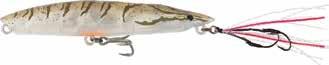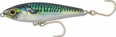 The Hydro Monster Shot is a heavy weighted lipped stick bait, that falls in a horizontal posture, with a side-to-side wobble that perfectly imitates a dying baitfish. It’s now available in a smaller 80mm/30g size for anglers wanting to match smaller bait profiles or target smaller species such as tailor, salmon and school tuna. On a straight retrieve it has wide wobble action, when jigged or twitched it has a sharp darting action and when burned across the surface it imitates a skipping gar or saury. Equipped with through-wire construction, a durable lead filled body and triple strength saltwater grade treble hooks it’s ready to target hard fighting fish. It comes in 6 colour patterns and 4 sizes to cover everything from mackerel, bonito, tailor or tuna. The thin profile mirrors a variety of bait fish with the added weight to make extra-long casts. Available in four sizes: 80mm/30grams, 95mm/40grams, 110mm/50grams & 125mm/60grams.