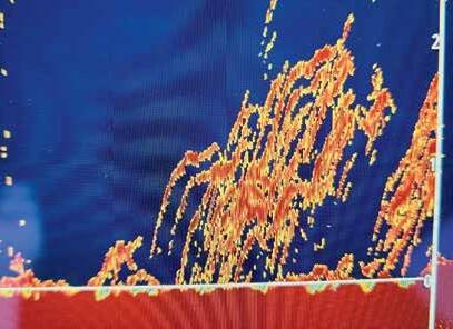 The Simrad showing a good school of snapper with some big models within it.