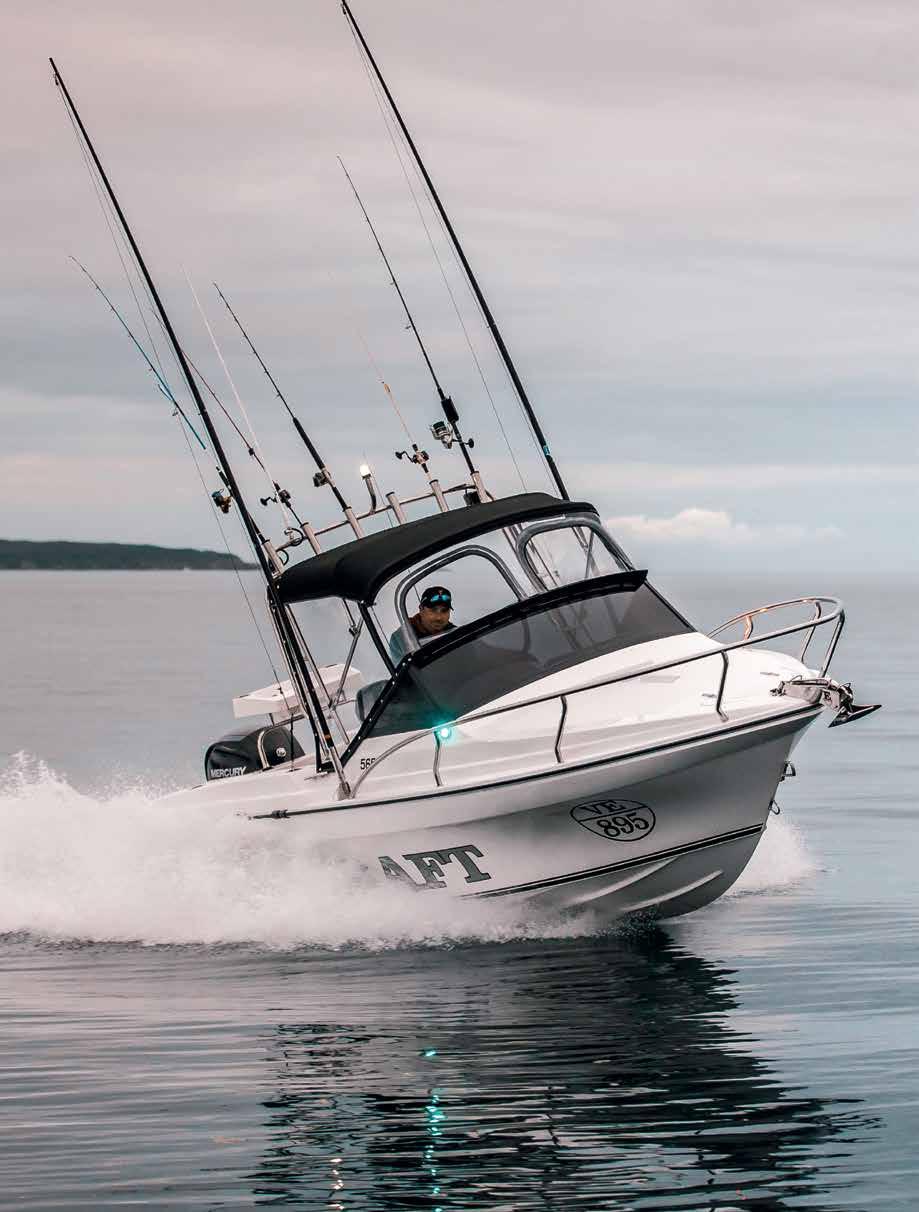 loved it. It was big, lots of dry storage, was a master of the lakes, estuaries and inshore lure fishing but wasn’t great to baitfish out of, wasn’t ideal offshore and you still had those same issues of getting wet, cold, sunburnt and the little things like trying to see your phone screen in full sun was almost impossible. We then moved on to a Sportsman Reef 19, and its layout made it a better bait fishing boat but we still had all the same issues of a centre console. As the captain and business owner I therefore accepted the inevitable – that I would have to run two boats, a cuddy cabin and an open boat. No more compromising; it was something I always knew I’d have to do.