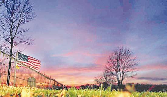 A lone American Flag stands sentinel over a remote cemetery in Tippecanoe County, as the sun sets on Veterans Day 2006. The scene was repeated countless times across the state as unseasonable weather warmed the parades, services and private reflections of Hoosiers as they marked the sacrifices of loved ones on that special day.