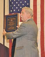 Bob McGee was recognized during the opening moments of the 2013 Joint Spring Conference April 5 when he was called to the stage to accept a framed Certificate of Appreciation for his gift of an Amethyst eagle on a mountain crag formed of the precious gemstone citrine. The eagle was on display throughout the conference courtesy of National Adjutant Daniel S. Wheeler.
