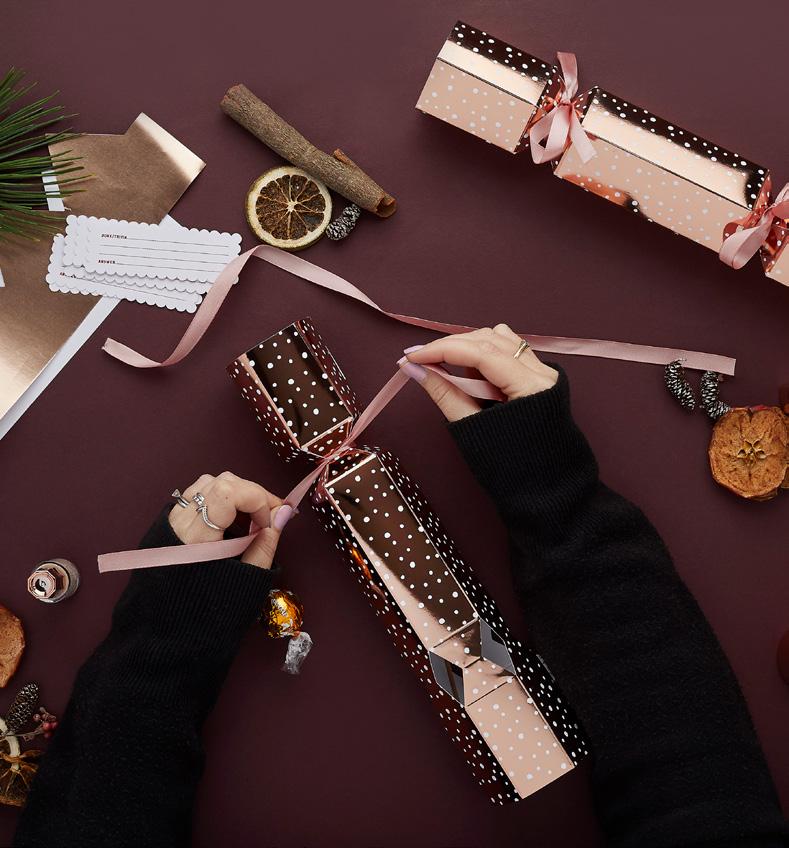6x Rose Gold Foiled Fill Your Own Christmas Crackers Product Code: HBHJ112 (6x Crackers, Hats, Joke Cards & Ribbon)