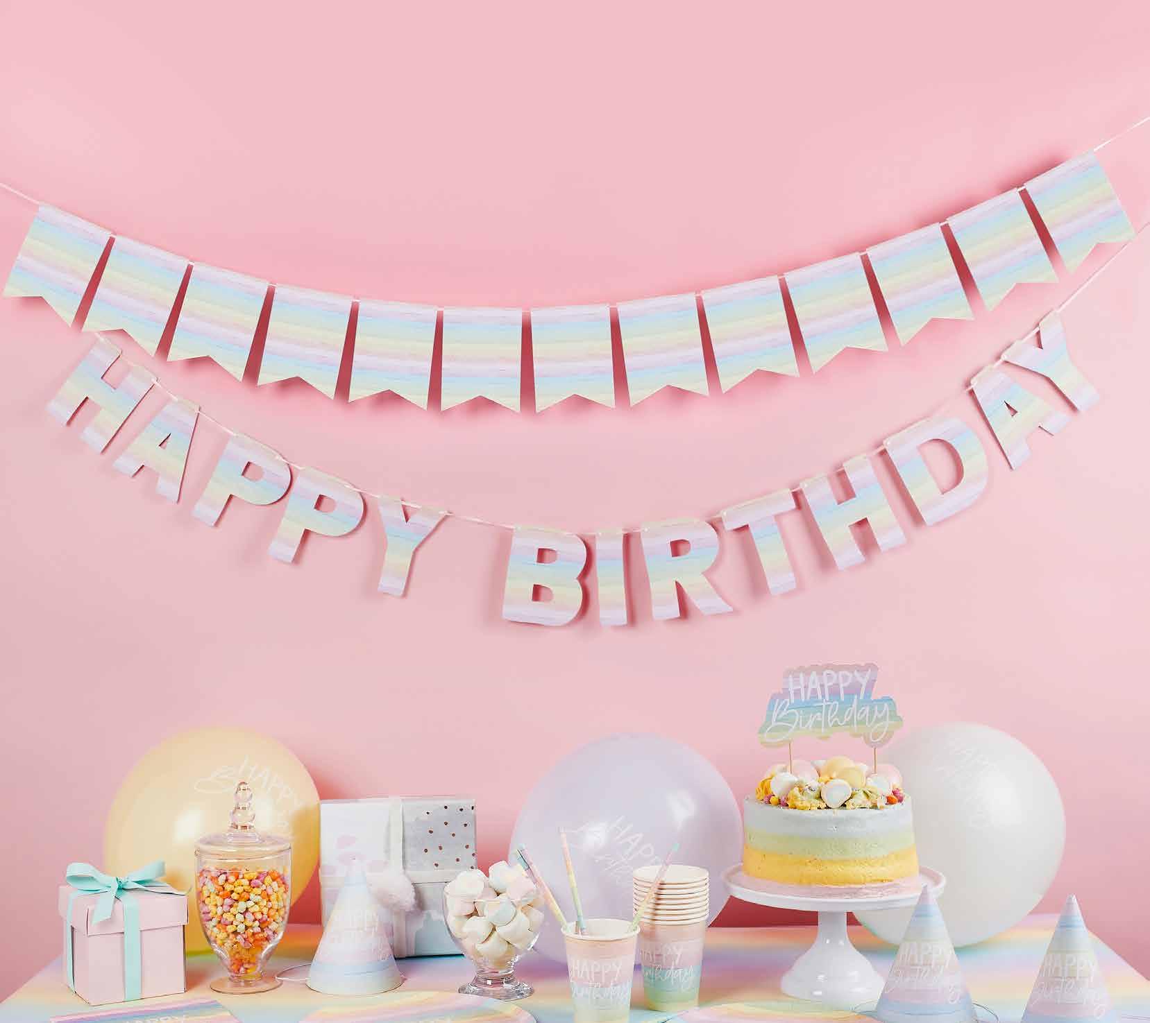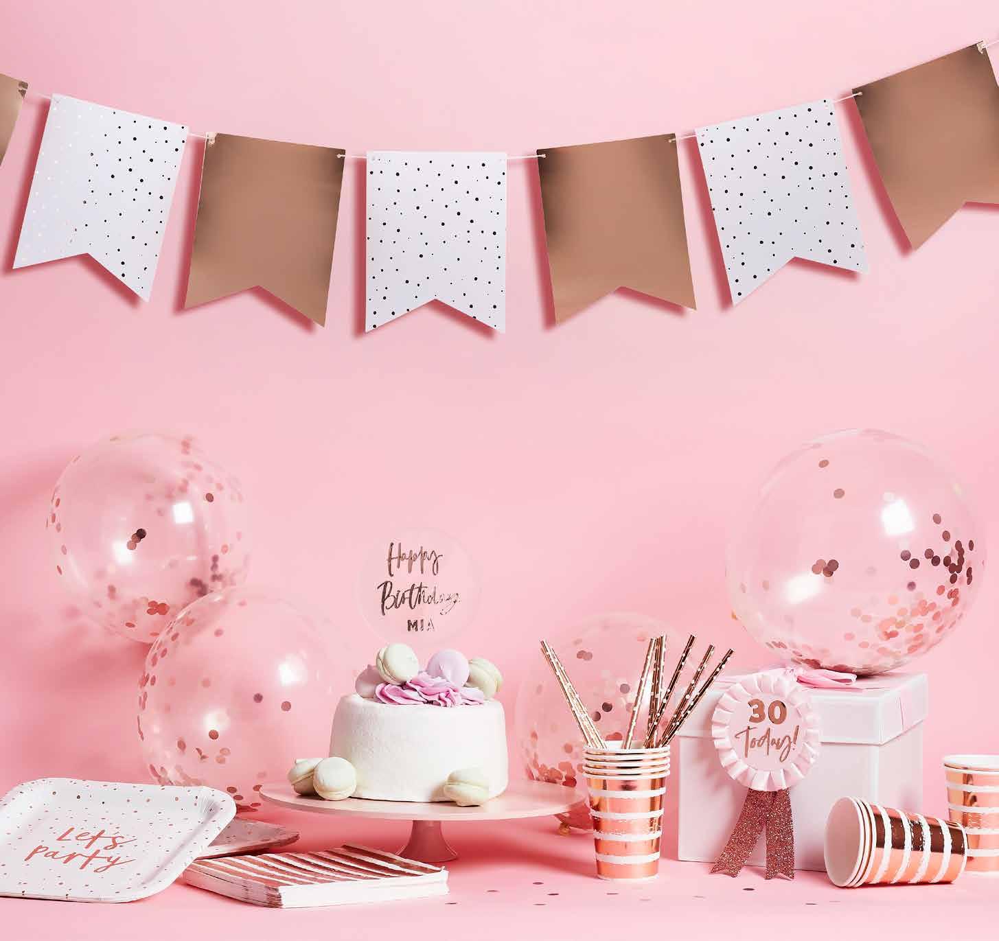Personalised Birthday Badge with Sticker Sheets Product Code: HBMM216 Must haves for a Perfectly Personalised Party! Customisable Banners, Cake Toppers & Badges. Create Your Own Banner Product Code: HBMM112 Size: 2m Metallic Mix Up Rose Gold | 6 It’s my Birthday Glitter Headband Product Code: HBMM361 Rose Gold Foiled Flag Bunting Product Code: HBMM220 Size: 10m