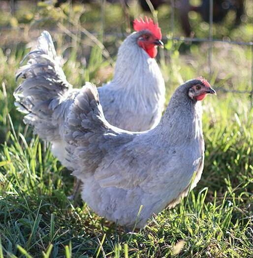 Barnevelders are medium heavy, dual-purpose birds that are very cold hardy. Their beautiful double laced brown and blue feathers are just another perk of this docile bird that takes to foraging easily. The Barnevelders are single combed with yellow legs.
