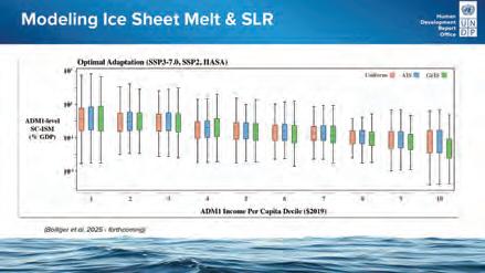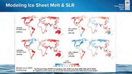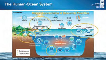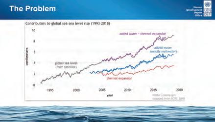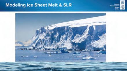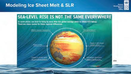 (Good Health and Well-being), and SDG 11 (Sustainable Cities). He notes that the UNDP views climate change as a critical factor in human development that exacerbates inequality, as it disproportionately harms vulnerable populations. Therefore, he argues that climate action is a crucial tool for addressing poverty and inequality. He also addresses scientific uncertainties, such as the rate of change in ocean currents and the melting of the Antarctic and Greenland ice sheets, which significantly impact the accuracy of sea-level rise predictions. He mentions the "gravitational effect," where the melting of ice sheets causes gravitational changes, leading to non-uniform sea-level rise globally, with a potential for lower sea levels near Greenland itself.