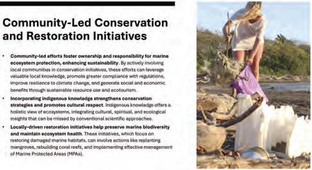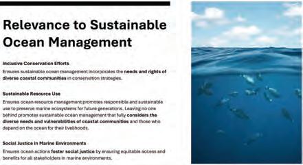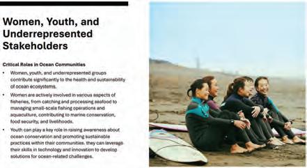 role of women, who make up half of the fishing population and are vital to marine conservation and food security. Additionally, he stresses the importance of engaging youth, who have the potential to drive marine conservation and develop solutions to related problems.