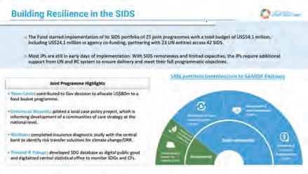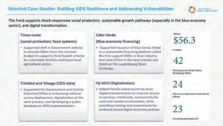 $6.6 billion in additional funding. A significant portion of his speech is dedicated to the fund's investment in Small Island Developing States (SIDS). A new funding window was created for SIDS during the pandemic, at the request of the UN Deputy Secretary-General. The fund has invested around $50 million in SIDS, which is crucial given the relatively small UN presence in these states. Much of this investment is directed towards the blue economy, supporting sustainable tourism and conservation. He provides several examples of their work. In Fiji, they support diving companies that also engage in conservation efforts. In Cabo Verde, they collaborate with the stock exchange to issue bonds that fund new blue economy ventures for youth and women's groups. In Trinidad and Tobago, they partner with the Central Statistical Office to enhance national survey capabilities and improve data digitalization. Finally, in Timor-Leste, a social protection program provides food baskets to those in need to enhance food security. Mr. Kim concludes by mentioning that a detailed report on the SIDS investments was released during the SIDS4 conference and is available online.
