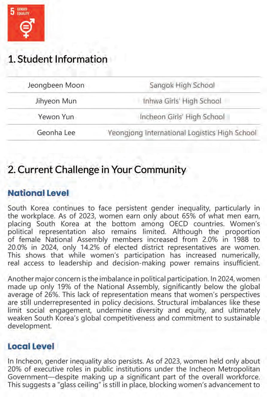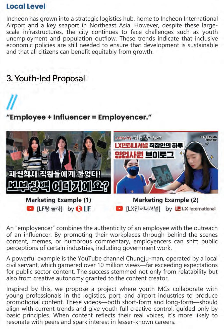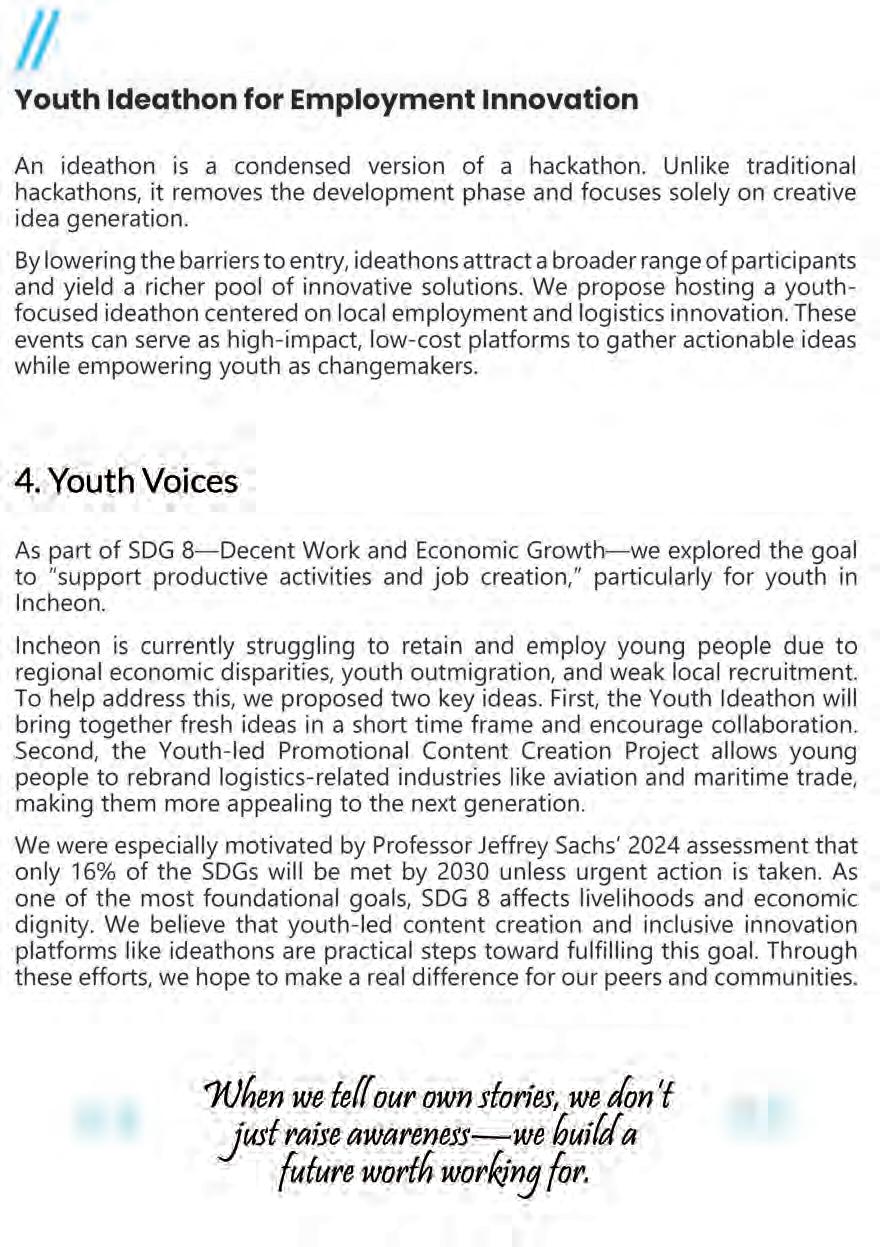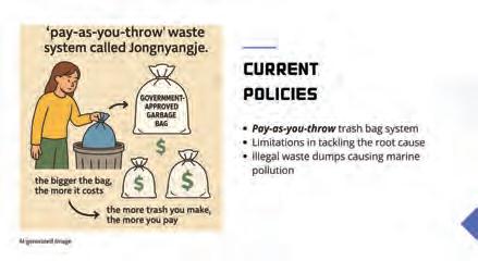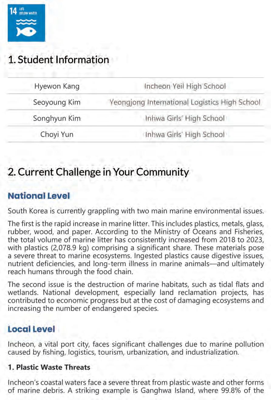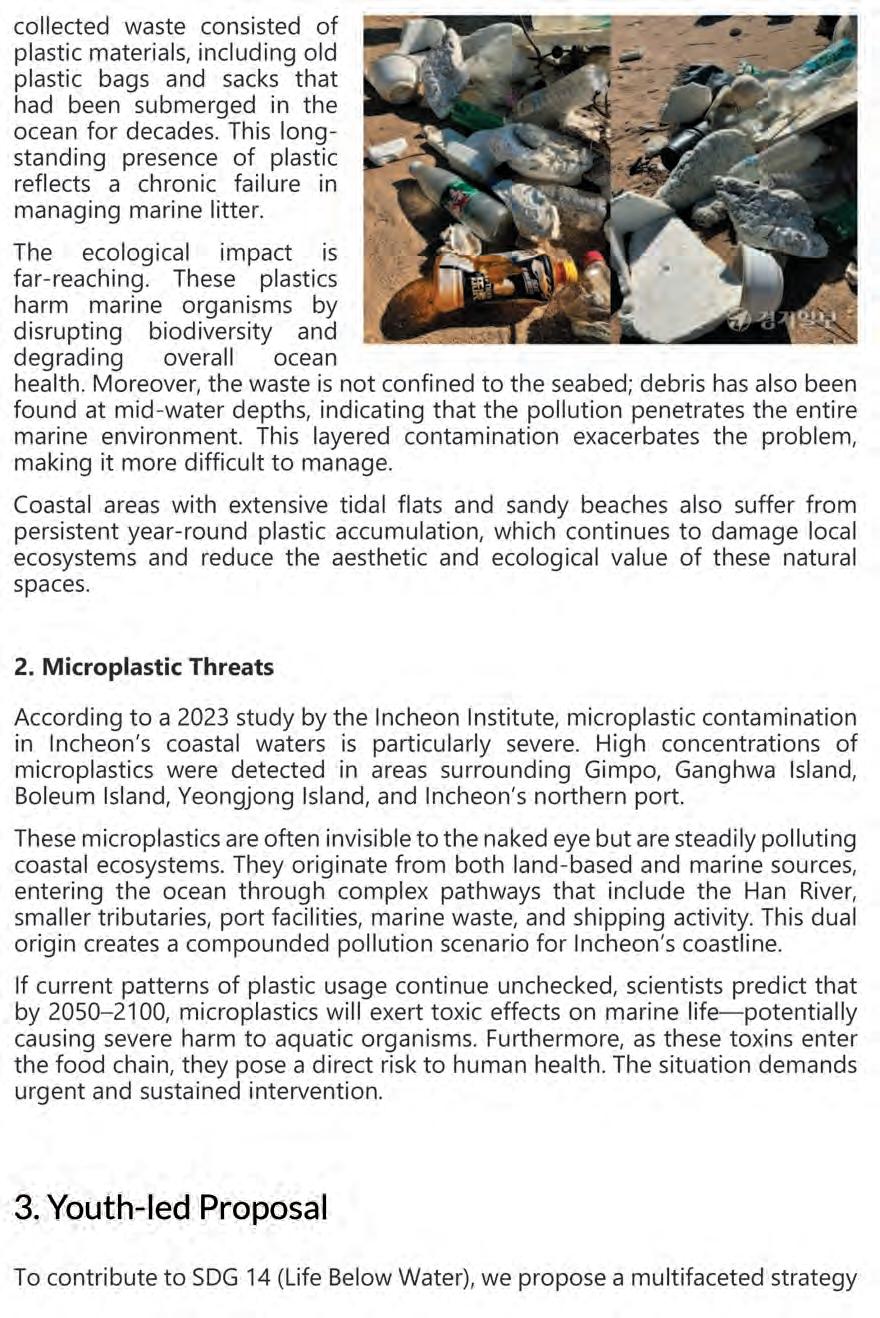 Addressing these issues requires collective action, especially from young people, who are not only the leaders of tomorrow but also the voices of change today. I am sure we can show a fresh perspective and bring creative ideas that can solve complex problems. So what kind of ideas can youth come up with to tackle Incheon's marine challenges? What are some realistic and tangible ways they can contribute?