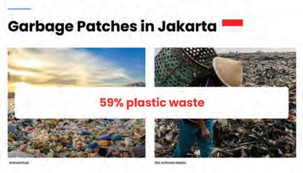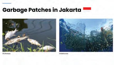 every day. Shockingly, around 59% of this waste is plastic. These wastes mainly flows through 13 rivers into the sea. As a result, "garbage patches" have formed in northern Jakarta Bay. The pollution in these garbage patches has led to many fish being found dead, floating on the surface of water. Entanglement incidents have also been frequently reported. Marine animals often get their fins, beaks, or necks caught in plastic waste, often resulting in serious injury or death.