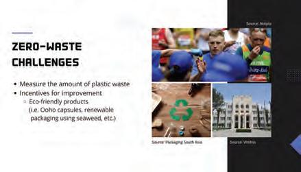 The second option is to conduct a zero-waste challenge at the school level. First, the school measures the amount of plastic waste during designated weekly recycling hours. Then, if the amount of plastic waste decreases compared to the previous month, the school will receive eco-friendly products, such as Ooho capsules. It is an edible water container made from seaweed. Or a renewable packaging product from companies like Notpla, which develops sustainable materials using seaweed and plants.