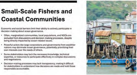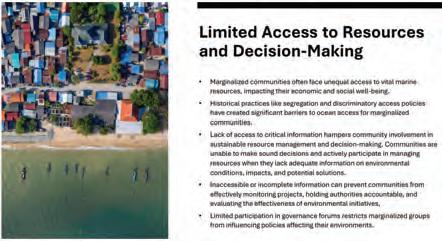 He outlines key barriers that prevent these vulnerable groups from participating in marine management. These include poverty, which limits their involvement; political and institutional hurdles that block their participation in policy-making; and a lack of access to information, which hinders their ability to make informed decisions. He also notes the problem of non-transparent decision-making processes, which leaves these communities in the dark about how decisions are made and how they will be affected.