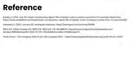 It began in 2003 with the goal of enhancing cooperation among countries to protect the marine ecosystems of East Asia and promote sustainability. Since then, it has been held every three years. During the congress, government officials and marine experts from various countries gather to discuss major ocean-related issues such as marine pollution, climate change, and biodiversity conservation. The most recent congress was held in 2024 in Xiamen, China. It included policy discussions, international academic sessions, exhibitions, and a youth forum. This congress not only focuses on policymaking but also emphasizes the role of future generations by actively engaging young people in discussions and actions. Based on this, I have developed a solution to marine waste: the East Asian Marine Spatial Management Map. In this project, youth organizations from each country would investigate the current status of plastic waste along their coastlines and monitor changes in local marine species. The collected data would be visualized on a shared interactive map, updated in real time and made publicly available through an open platform based on Google Maps. This idea was inspired by real-time traffic systems, where users can instantly check conditions across multiple areas. In the same way, this marine management map would allow users to view up-to-date environmental data from various East Asian coasts, all in real time. The image on the right shows an AI-generated concept of what the map could look like. Since the type and amount of marine waste, as well as the species in danger, are different by region, this map would highlight those regional differences. That is one of the