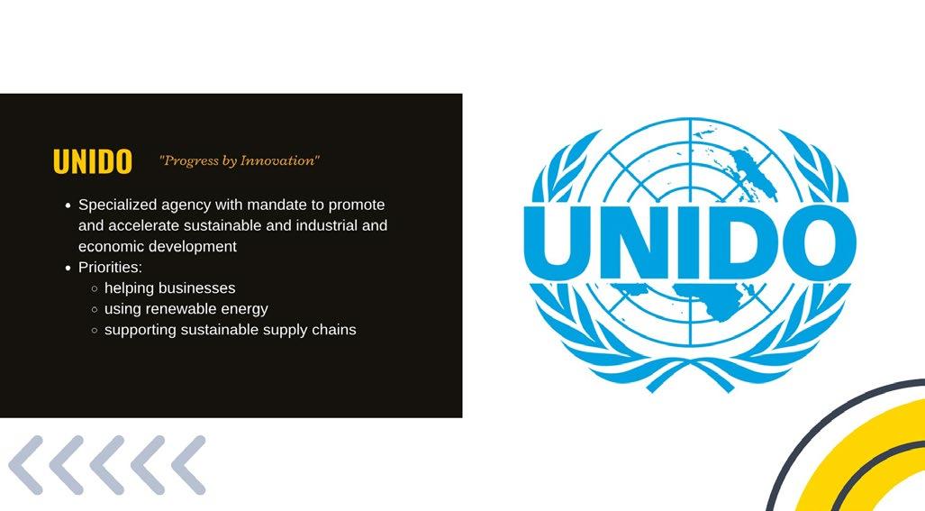 UNIDO, which refers to the United Nations Industrial Development Organization, is a specialized agency in the UN with a mandate to promote and accelerate sustainable and industrial economic development. Its motto, “progress by innovation,” reflects its mission to gain progress sustainably by using innovative methods. It has a crucial role in the progress of SDG Goal 9 along with other goals related to industries. Its main priorities include reducing hunger by helping businesses grow, decreasing negative environmental effects by promoting the use of renewable energy, and supporting sustainable supply chains.