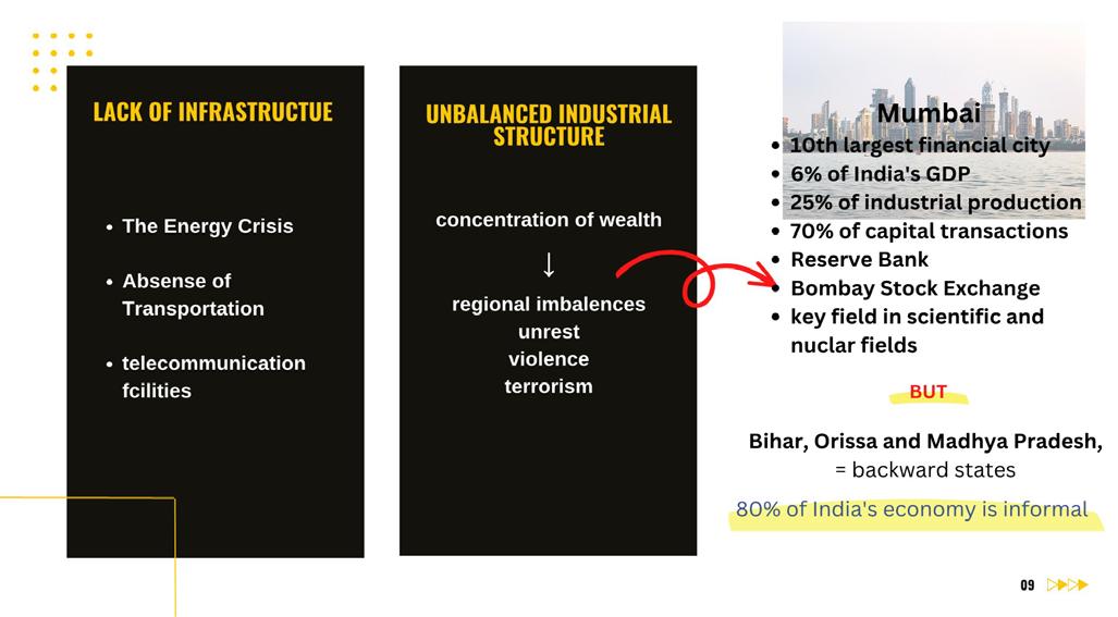 In 1956, India was introduced to its first industrial policy by an Indian professor named Prasanta Chandra Mahalanobis. The goal of the policy was to increase the output rate of India’s economy at the time in order to prioritize their investment goods. They also strived to explore the allocations of investment between different sectors of the economy. In short, this meant the application of heavy industry dominance; the term “heavy” in this situation refers to the items to be used in products such as iron, coal, oil, ships, etc,... It created a high barrier cost, high barriers to entry, and low transportability in their exports.