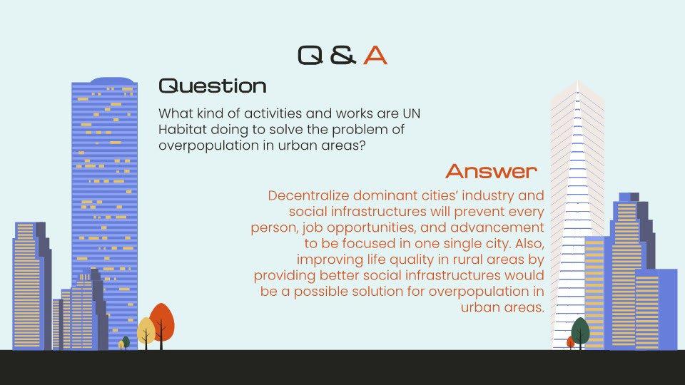 Creating a presentation about one of the UN organizations or SDGs with a team was another primary activity, partly based on the lectures. Before the program, I expected teamwork to be less challenging since we were working offline, but that was not the case. It was harder to distribute work evenly and plan what topics to research because there was generally less time available for us to work on the presentation compared to the last time I participated in the training program. Despite the obstacles, my teammates and I distributed the work evenly between us. We chose industrialization in India as the topic, as we thought it could be an interesting case study of a country that is industrialized but has various environmental and social issues. Although I was not completely satisfied with the final result, I played a major role in structuring the presentation. The research process was rigorous, as it took much time for all the teammates combined with the effort of reorganizing them, but I also acquired much knowledge by sharing information with my teammates.