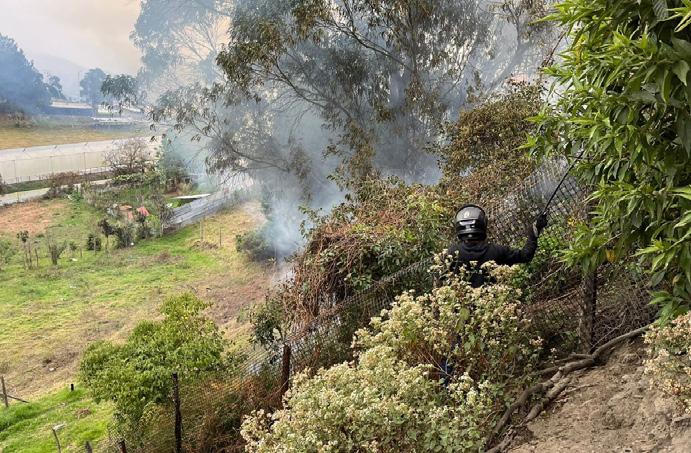 Los moradores del barrio Canteras del Pinar, ubicado un poco más allá del control policial, de la ciudad de Loja, por la vía nueva a Catamayo, la tarde de este domingo, 21 de julio de 2024, se llevaron un buen susto luego que se presentara allí un incendio forestal.